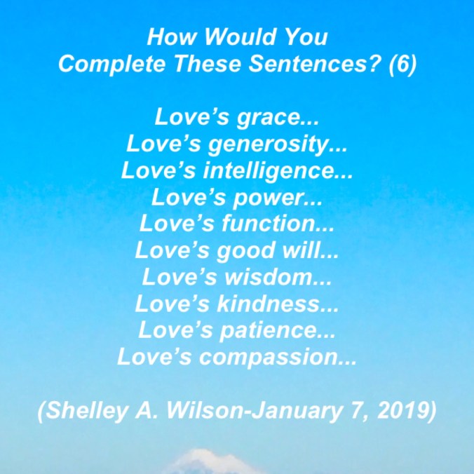 How Would You Complete…(7) January 7, 2019 / Flowerpoet / Leave a comment Love… Share this: Click to share on Facebook (Opens in new window) Facebook Click to share on Pinterest (Opens in new window) Pinterest Click to share on X (Opens in new window) X Click to email a link to a friend (Opens in new window) Email Click to print (Opens in new window) Print Like Loading...