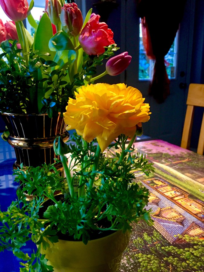 Taking time out from crafting, my daughter and I are enjoying these flowers and puzzle on our table for a while. Like breathing, inspiration will eventually come to start the creative process for new projects to be expressed here on our craft table. Then, when these flowers and puzzles and projects are long forgotten, this photo will help us remember this time and this table of flowers and the puzzle we worked on together.