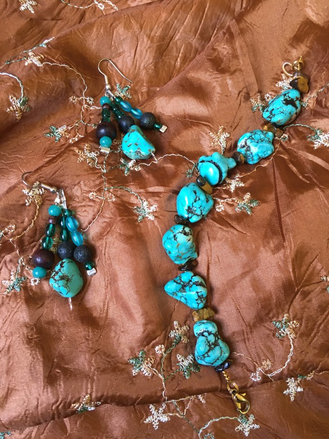 Recycling my old turquoise jewellery into something new is fun.