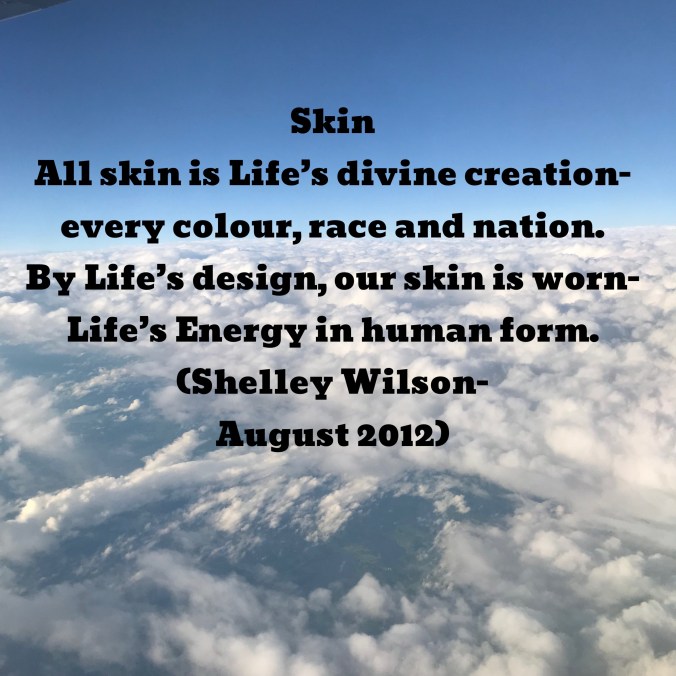 Skin… June 1, 2020 / Flowerpoet Above racist and religious hate we must evolve. Share this: Click to share on Facebook (Opens in new window) Facebook Click to share on Pinterest (Opens in new window) Pinterest Click to share on X (Opens in new window) X Click to email a link to a friend (Opens in new window) Email Click to print (Opens in new window) Print Like Loading... Related