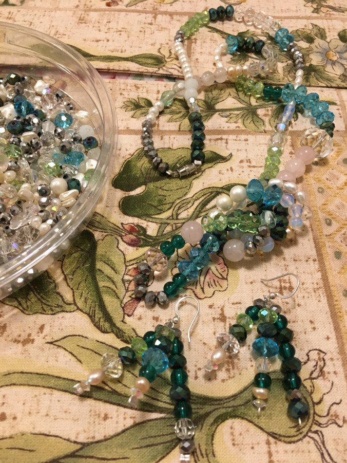 I created a new necklace and earrings for myself as a fun project. They sparkle in good lighting. Bling is always in fashion for me.