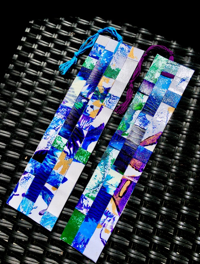 This is another fun project I created with my strips of acrylics on paper. Double sided. Bookmarks always come in handy for someone like me because I still love the tactile feel of paper bound books.