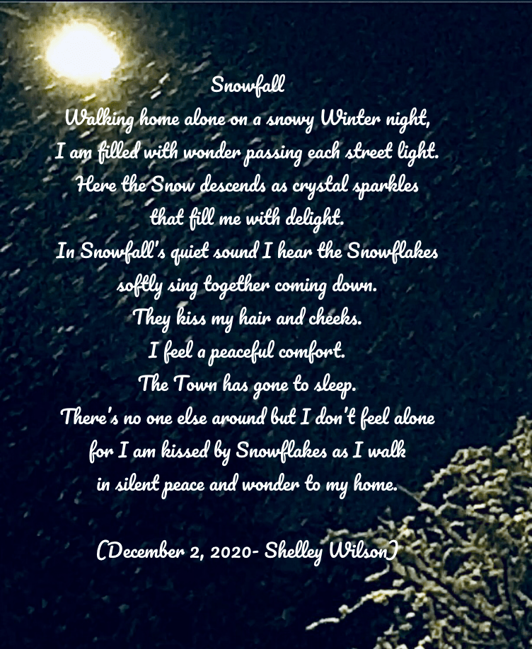 Snowfall December 2, 2020 / Flowerpoet Share this: Click to share on Facebook (Opens in new window) Facebook Click to share on Pinterest (Opens in new window) Pinterest Click to share on X (Opens in new window) X Click to email a link to a friend (Opens in new window) Email Click to print (Opens in new window) Print Like Loading... Related