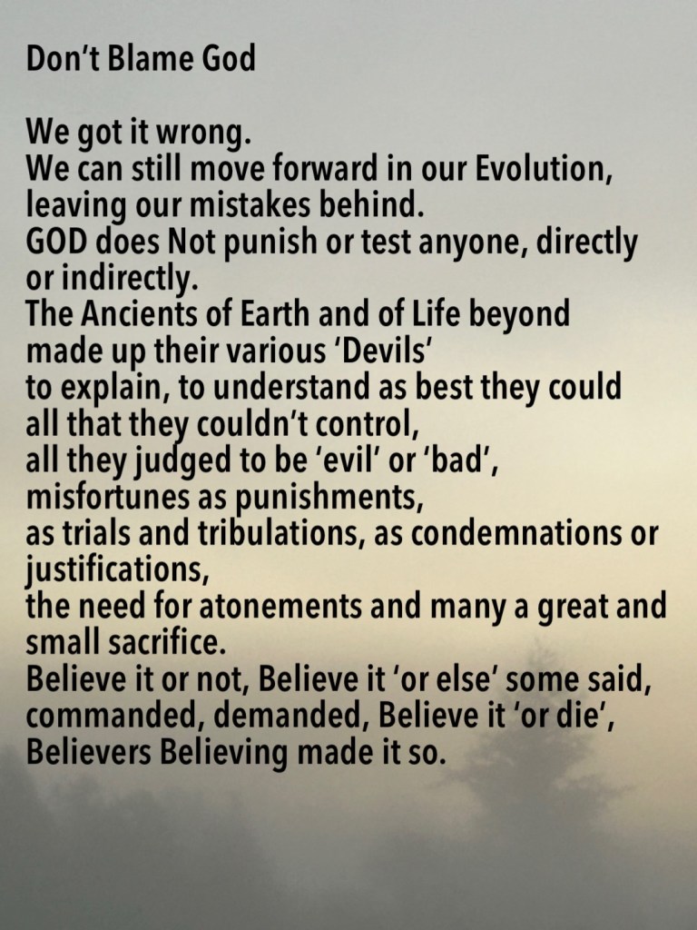 Don’t Blame GOD October 21, 2023 / Flowerpoet Don’t Blame GOD Share this: Click to share on Facebook (Opens in new window) Facebook Click to share on Pinterest (Opens in new window) Pinterest Click to share on X (Opens in new window) X Click to email a link to a friend (Opens in new window) Email Click to print (Opens in new window) Print Like Loading... Related