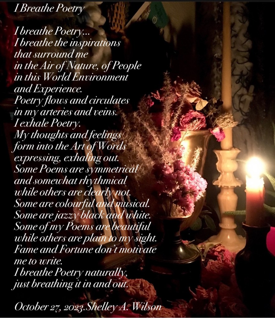 I Breathe Poetry October 27, 2023 / Flowerpoet Sharing my poem and photo, I Breathe Poetry. Share this: Click to share on Facebook (Opens in new window) Facebook Click to share on Pinterest (Opens in new window) Pinterest Click to share on X (Opens in new window) X Click to email a link to a friend (Opens in new window) Email Click to print (Opens in new window) Print Like Loading... Related