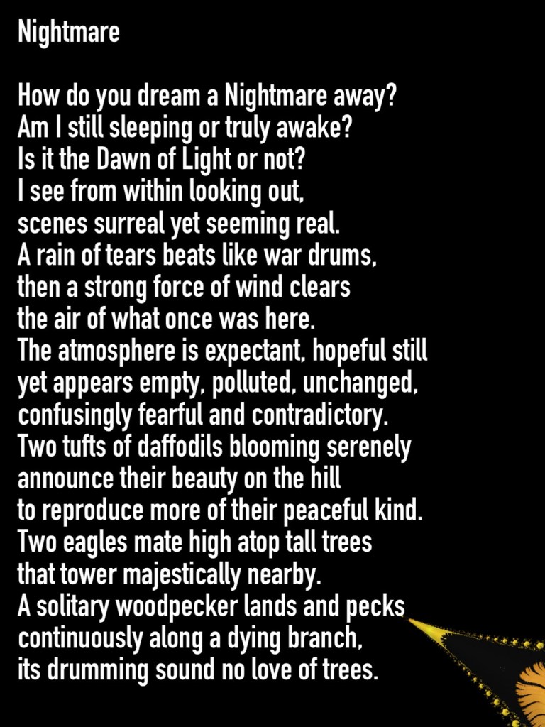 Nightmare March 11, 2024 / Flowerpoet How do you dream a Nightmare away? Share this: Click to share on Facebook (Opens in new window) Facebook Click to share on Pinterest (Opens in new window) Pinterest Click to share on X (Opens in new window) X Click to email a link to a friend (Opens in new window) Email Click to print (Opens in new window) Print Like Loading... Related