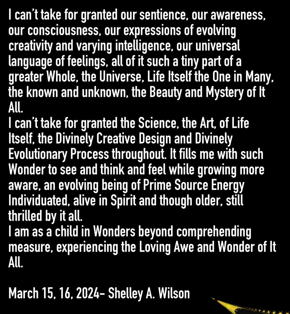 I Can’t Take For Granted March 16, 2024 / Flowerpoet So much I can’t take for granted… Share this: Click to share on Facebook (Opens in new window) Facebook Click to share on Pinterest (Opens in new window) Pinterest Click to share on X (Opens in new window) X Click to email a link to a friend (Opens in new window) Email Click to print (Opens in new window) Print Like Loading... Related