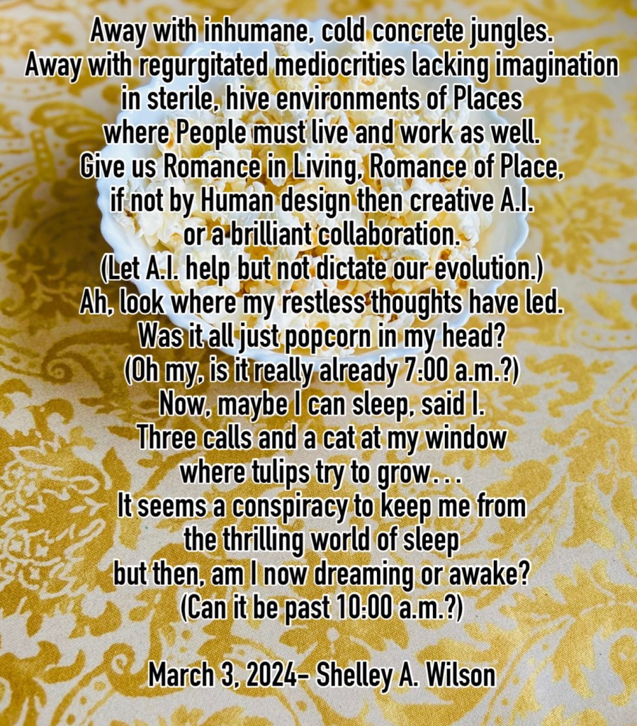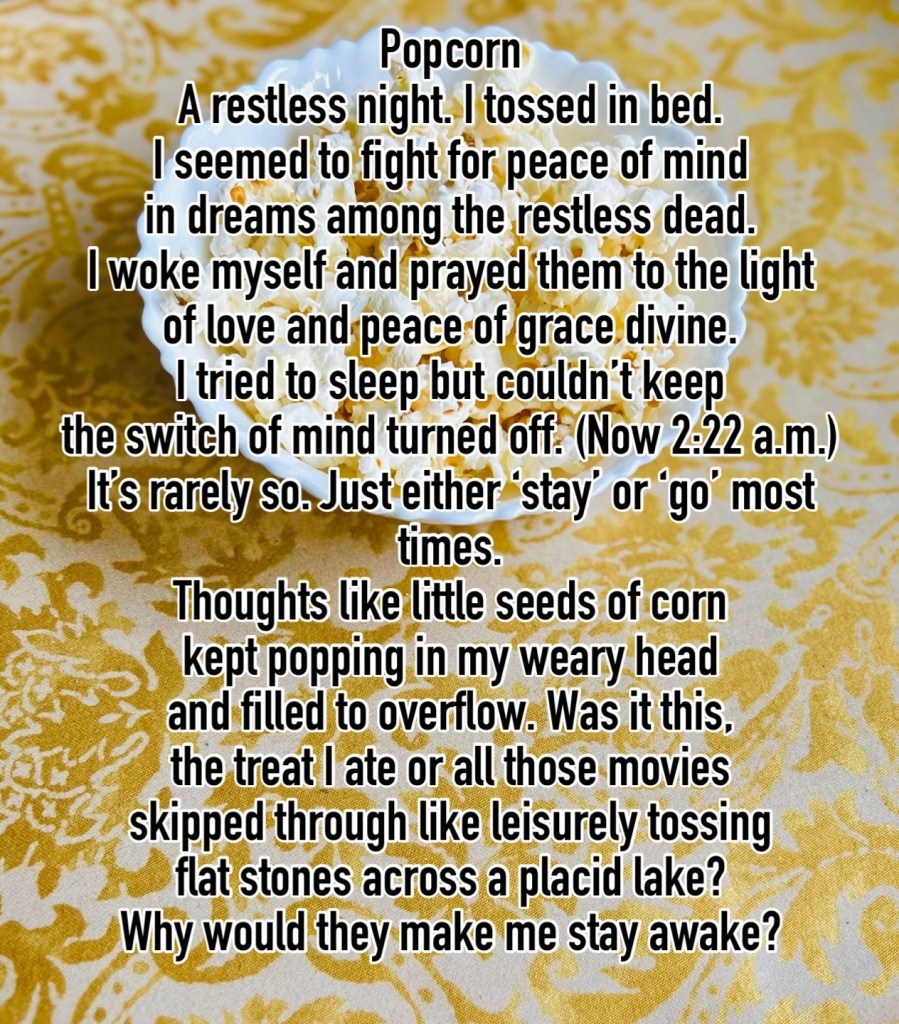 Popcorn March 3, 2024 / Flowerpoet / Leave a comment Written in the early hours of this morning Share this: Share on Facebook (Opens in new window) Facebook Share on Pinterest (Opens in new window) Pinterest Share on X (Opens in new window) X Email a link to a friend (Opens in new window) Email Print (Opens in new window) Print Like Loading...