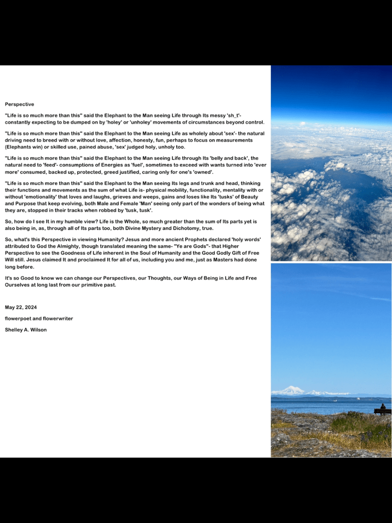 Perspective… May 23, 2024 / Flowerpoet / Leave a comment My photos with poem Share this: Click to share on Facebook (Opens in new window) Facebook Click to share on Pinterest (Opens in new window) Pinterest Click to share on X (Opens in new window) X Click to email a link to a friend (Opens in new window) Email Click to print (Opens in new window) Print Like Loading...