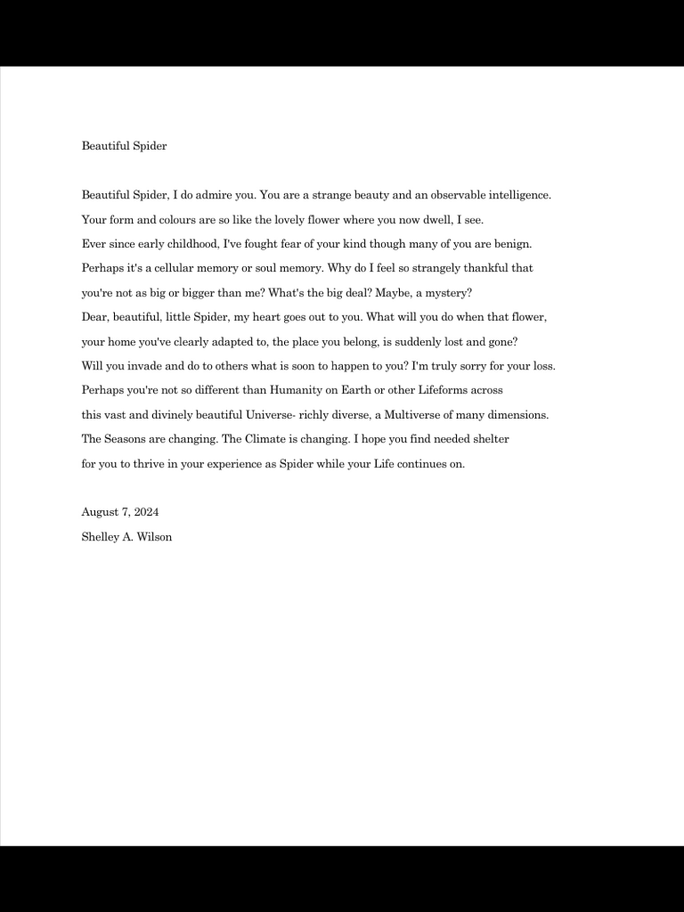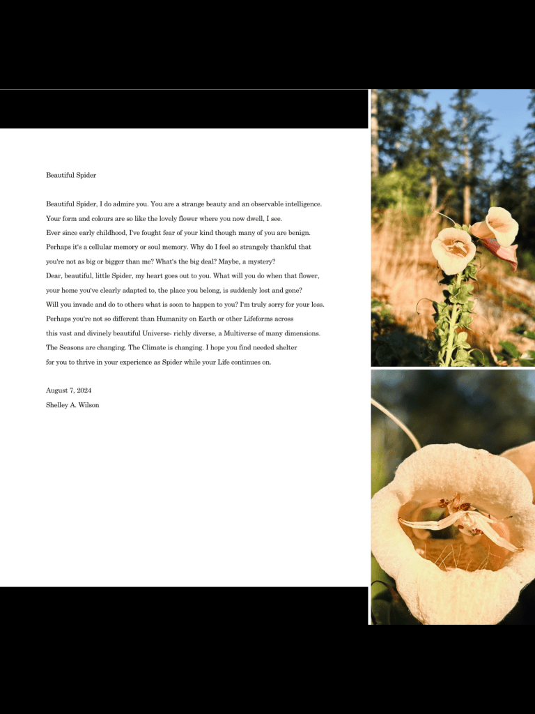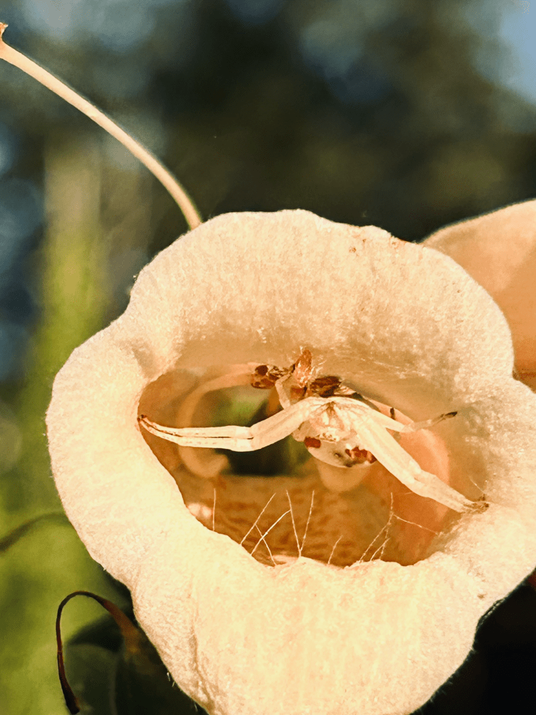 Beautiful Spider August 7, 2024 / Flowerpoet We bought the Foxglove plant this year, not knowing until recently that it has an inhabitant. Beautiful Spider Share this: Click to share on Facebook (Opens in new window) Facebook Click to share on Pinterest (Opens in new window) Pinterest Click to share on X (Opens in new window) X Click to email a link to a friend (Opens in new window) Email Click to print (Opens in new window) Print Like Loading... Related
