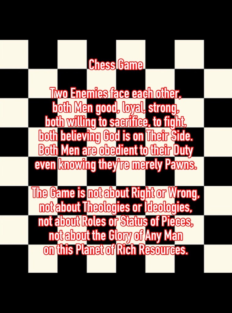 Chess Game December 14, 2024 / Flowerpoet Share this: Click to share on Facebook (Opens in new window) Facebook Click to share on Pinterest (Opens in new window) Pinterest Click to share on X (Opens in new window) X Click to email a link to a friend (Opens in new window) Email Click to print (Opens in new window) Print Like Loading... Related