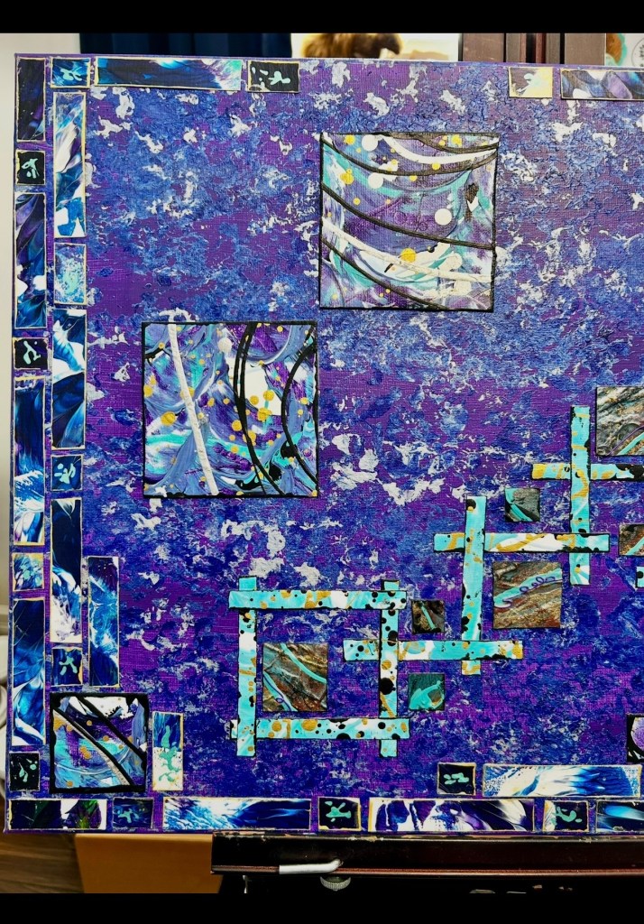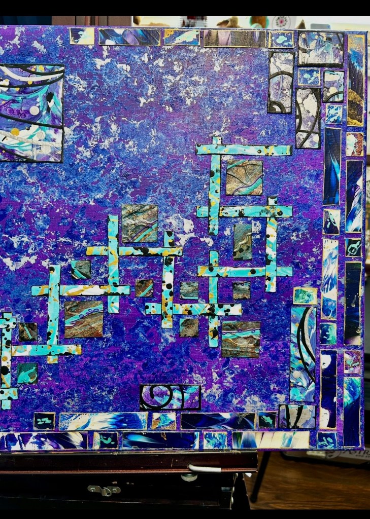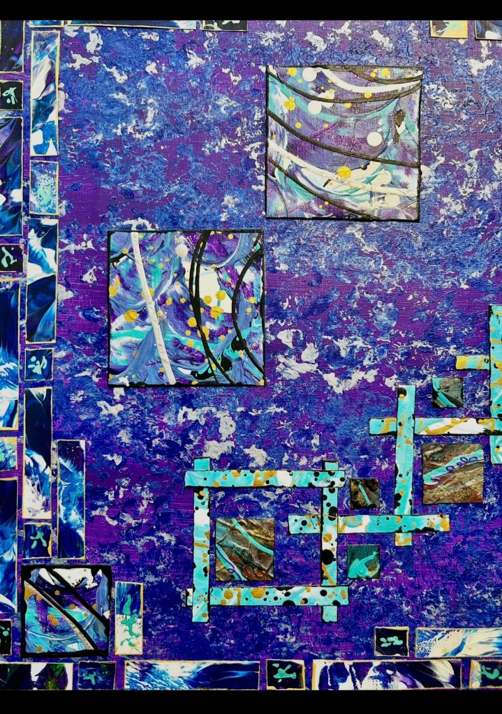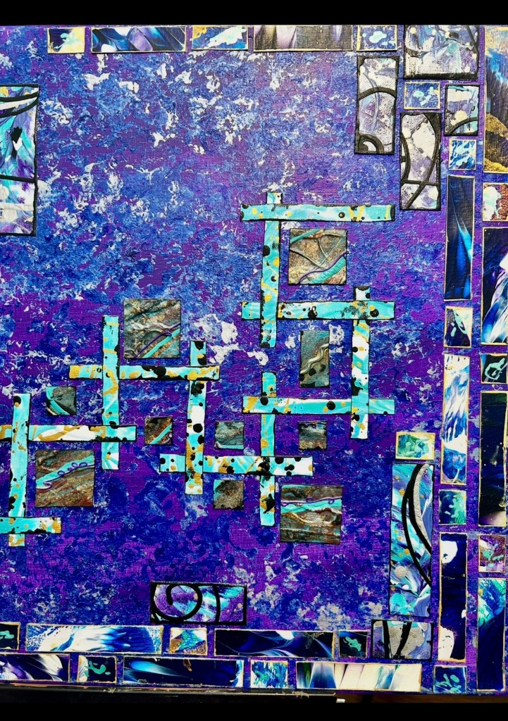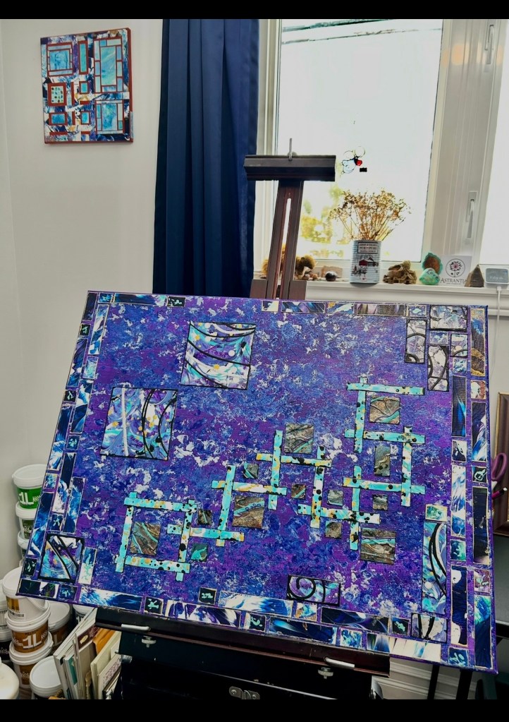 Acrylics on canvas and paper on canvas abstract. I call it my ‘Quiet Art’. So, I finally stopped procrastinating and started playing with my art supplies again. The winter light through the window and the artificial light dull down the colours so I did some photo editing. You might say that the colours are ‘almost true’. 😂