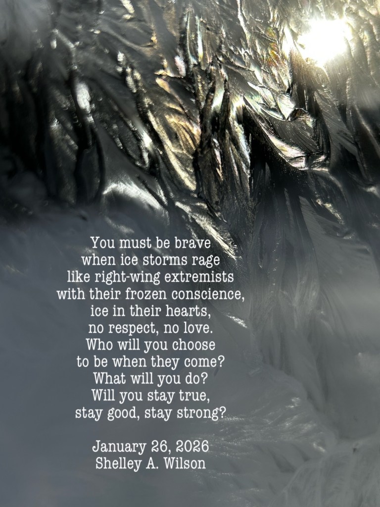 Ice Storms January 26, 2026 / Flowerpoet It takes courage to come to this World… Share this: Share on Facebook (Opens in new window) Facebook Share on Pinterest (Opens in new window) Pinterest Share on X (Opens in new window) X Email a link to a friend (Opens in new window) Email Print (Opens in new window) Print Like Loading... Related