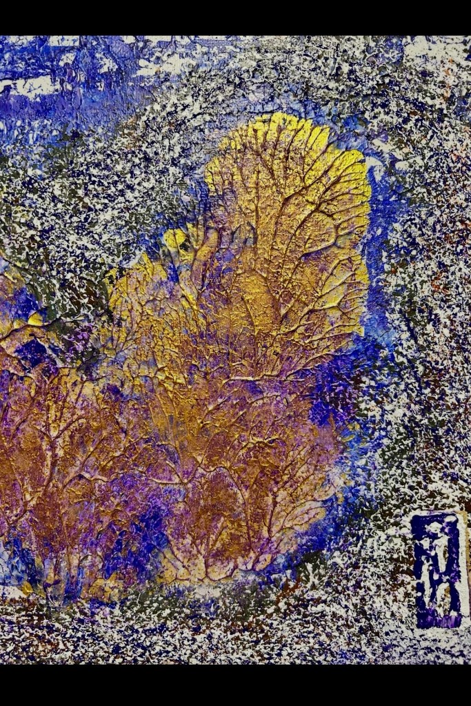 I call it my ‘Busy Art’ because that’s how it feels. Acrylics on canvas and paper on canvas. Would some call it Intuitive Abstract or simply Collage? I’ve seen artists attempting to avoid too much ‘busyness’ in their art, but here I am embracing it. Unplanned, of course. Realism and good sketching don’t seem to be part of my skill set, but that’s okay with me. I do believe that I worked with that challenge in at least one other lifetime but now my personality feels more in tune with spontaneity, surprise and trying new and different expressions of what artistry means to me. I am more in tune with abstraction which for me is not emotional or cozy art. It’s like cold calculus in a way, though I’m a bit of a ‘Spock’ with regard to depth of emotions. Not as intelligent, of course, though I do envision unusual things at times. For example, I recently had a conversation with my son, Aaron, who has published four books on physics and reverse physics theories recently and this conversation led to my telling him of something I envisioned. He said it was about Calculus. I see a horizontal line starting with 0 (which has always fascinated me to no end) and on the right is a line of plus 1, plus 2, plus 3, and so on to infinity. There on the left of 0 is minus 1, minus 2, minus 3, and so on to infinity. Now I see this horizontal line of Numbers become more ‘spherical’ in every direction. It awes me. My son says it is Growth. I like that. I wouldn’t know how to ‘paint’ that or express it in art. Maybe, Ai could do that?