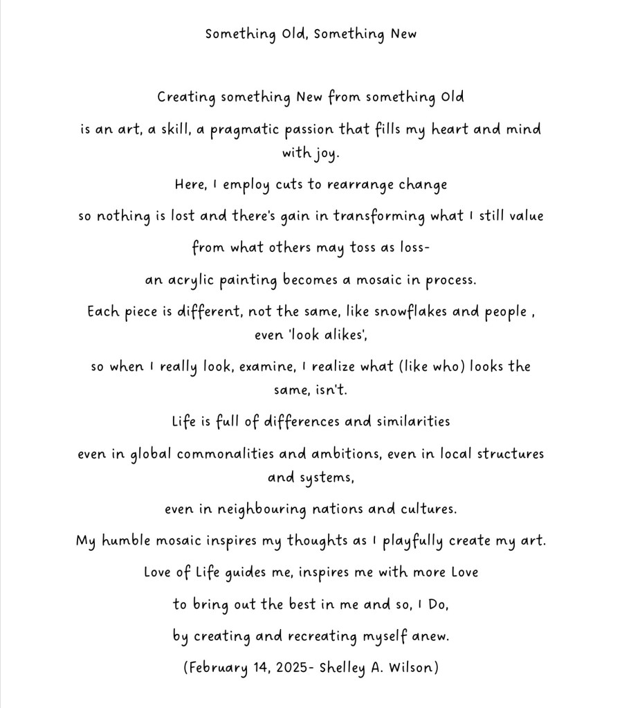 My humble mosaic inspires my thoughts as I playfully create my art.