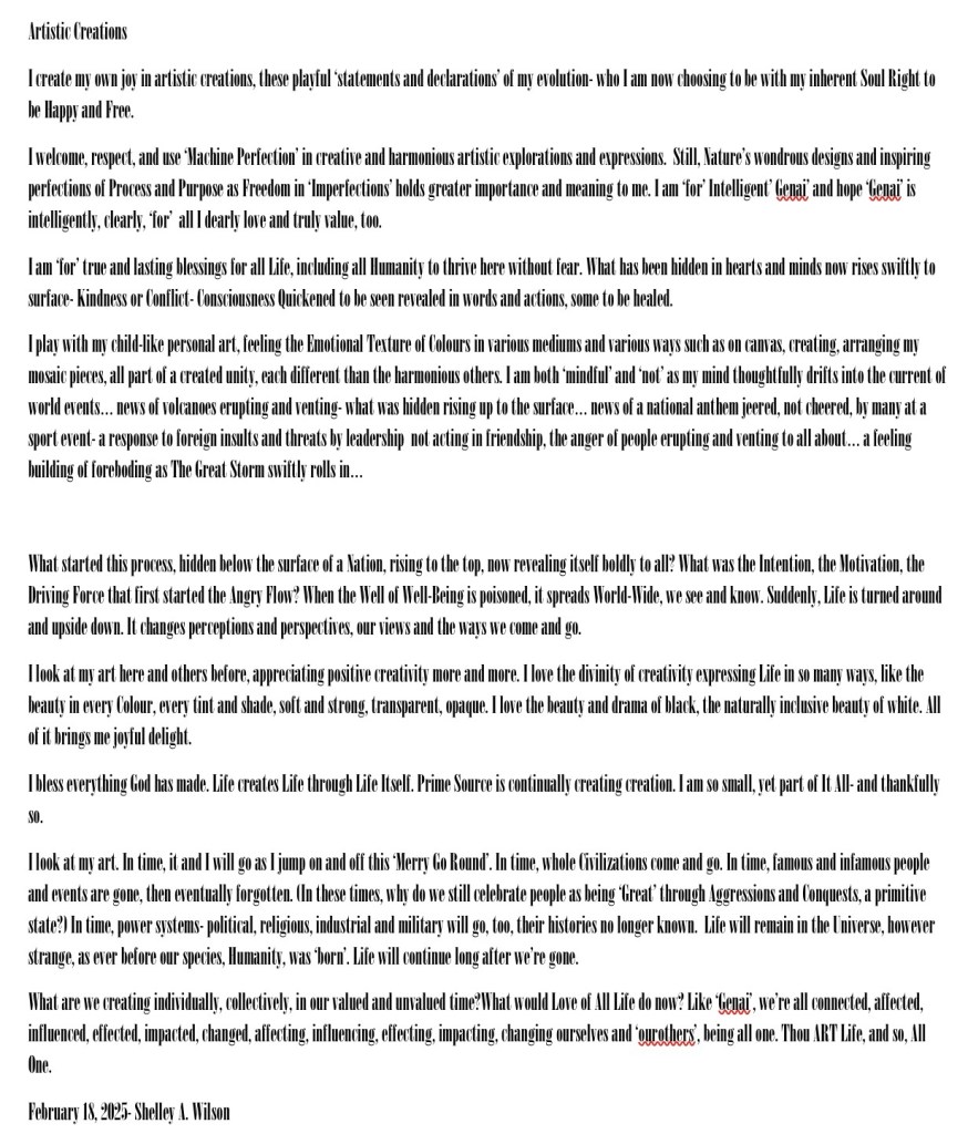 Artistic Creations February 18, 2025 / Flowerpoet / 2 Comments My art, photos and text… Share this: Click to share on Facebook (Opens in new window) Facebook Click to share on Pinterest (Opens in new window) Pinterest Click to share on X (Opens in new window) X Click to email a link to a friend (Opens in new window) Email Click to print (Opens in new window) Print Like Loading...