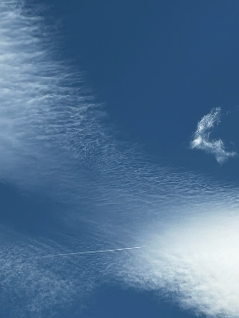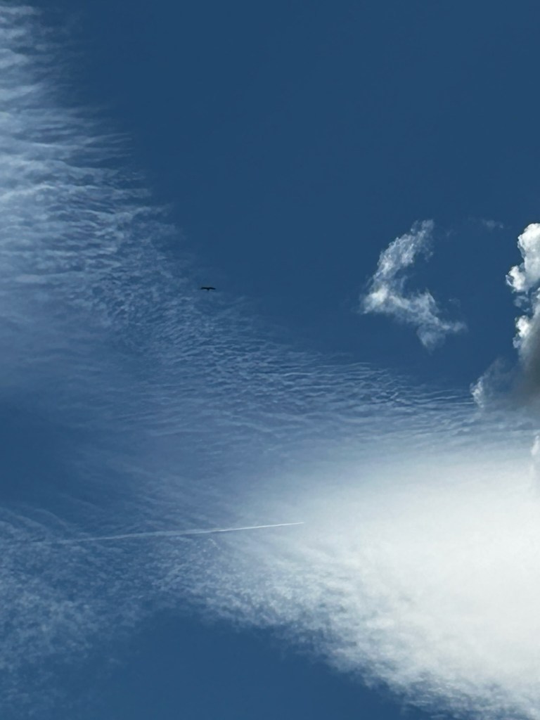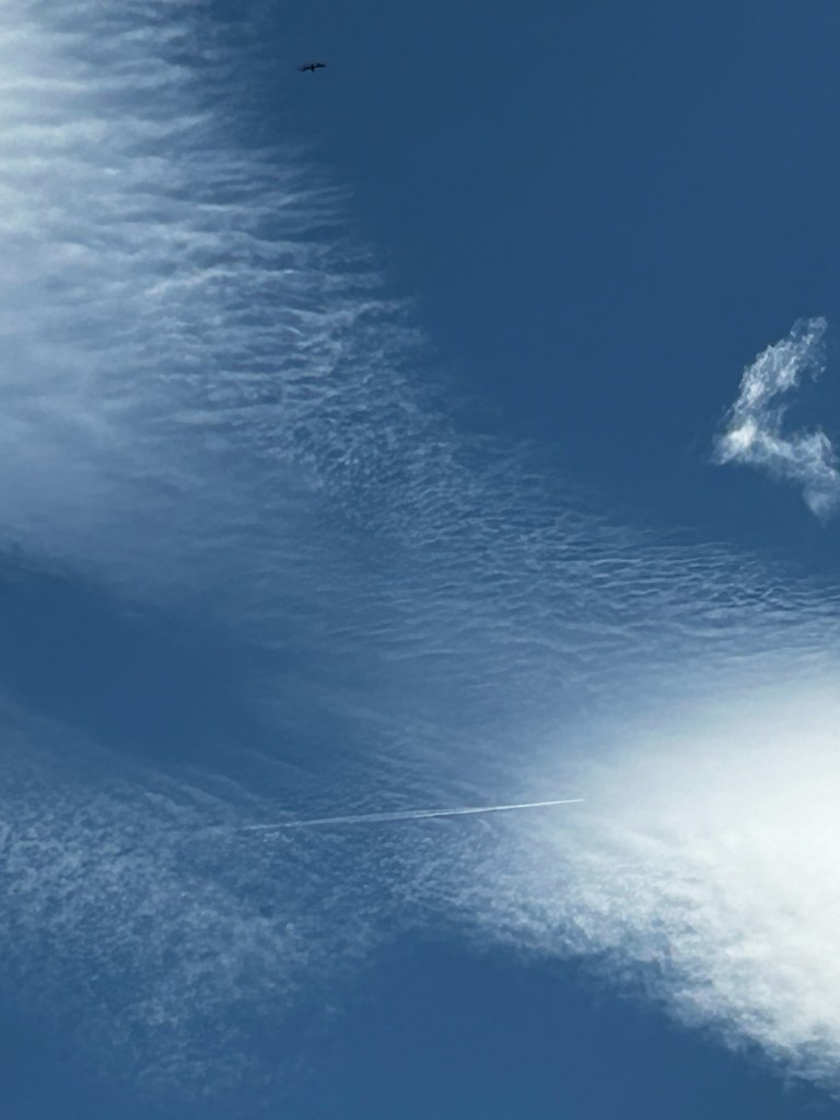 Watching the white thread of the jet today, I was delighted to see another high flyer appear for a moment to adorn the jet thread.