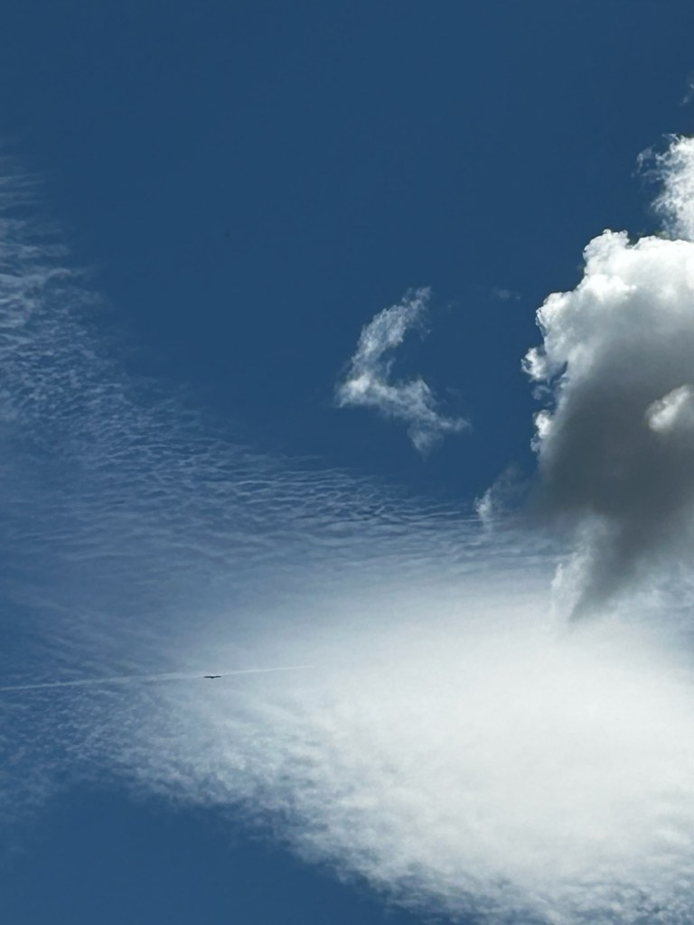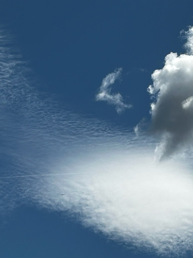 My collection of cloud photos is limited so I’ll keep looking to the sky. We had a thunderstorm pass over the town and lake towards the Quebec side one early evening recently. I wasn’t able to catch the drama of the many lightning strikes. Photos not taken. A family member was outside with a neighbour during this dramatic entertainment when they saw what I call three ‘FFO’ s
