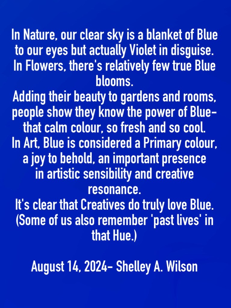 Blue August 14, 2024 / Flowerpoet / Leave a comment In Nature, Blue Fire is hotter than Red… Share this: Click to share on Facebook (Opens in new window) Facebook Click to share on Pinterest (Opens in new window) Pinterest Click to share on X (Opens in new window) X Click to email a link to a friend (Opens in new window) Email Click to print (Opens in new window) Print Like Loading...