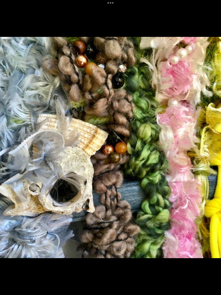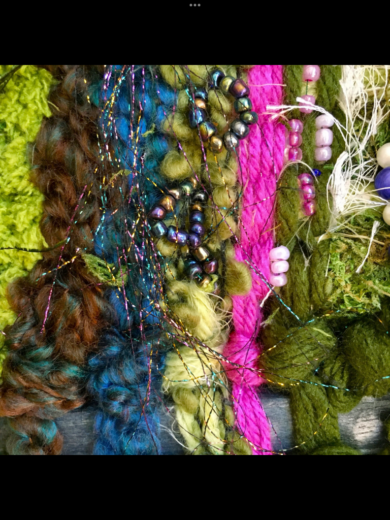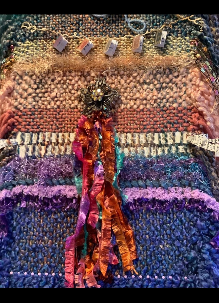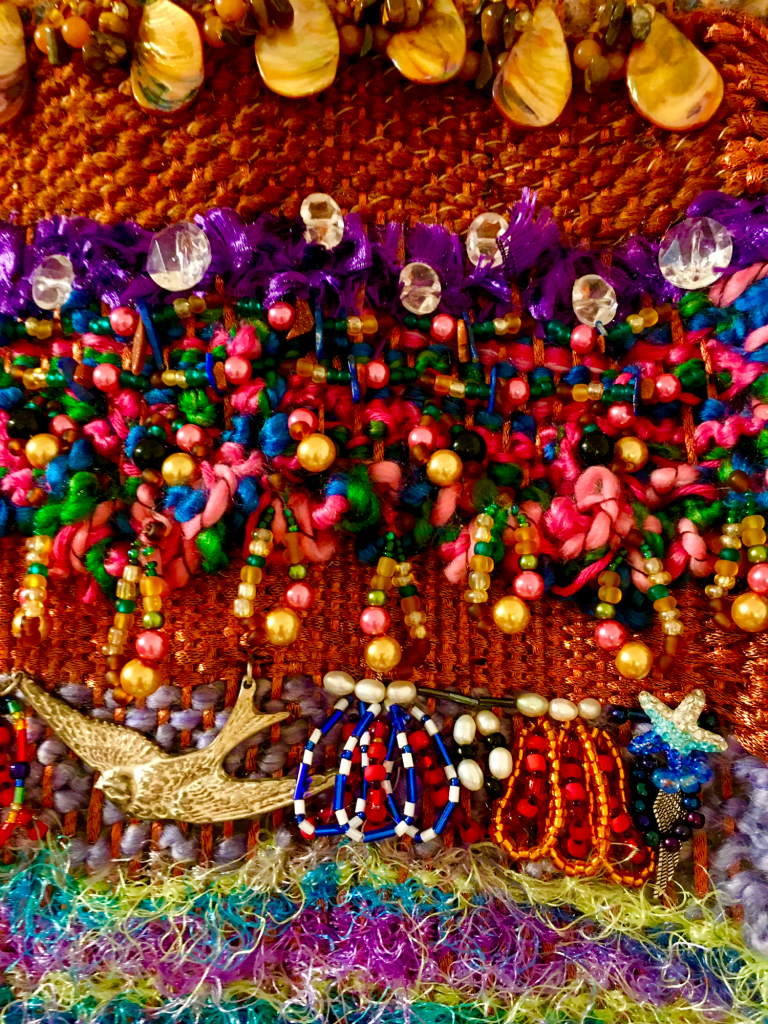 Photo from my mid fifties and weaves with beads etc hobby pics close up I like to add as much variety in textures as possible along with beads and such. Also, I find it more fun when I have a theme, person or place in mind.