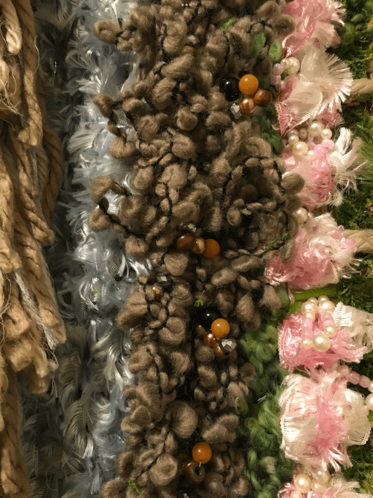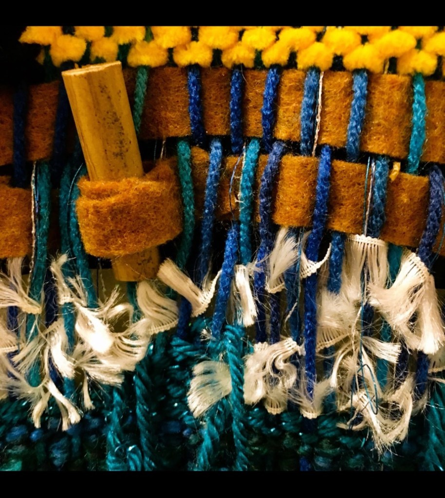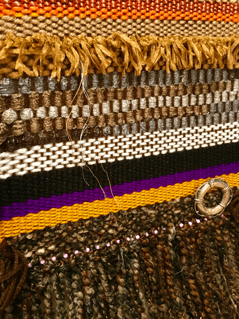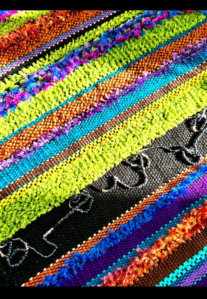 Photo from my mid fifties and weaves with beads etc hobby pics close up I like to add as much variety in textures as possible along with beads and such. Also, I find it more fun when I have a theme, person or place in mind.