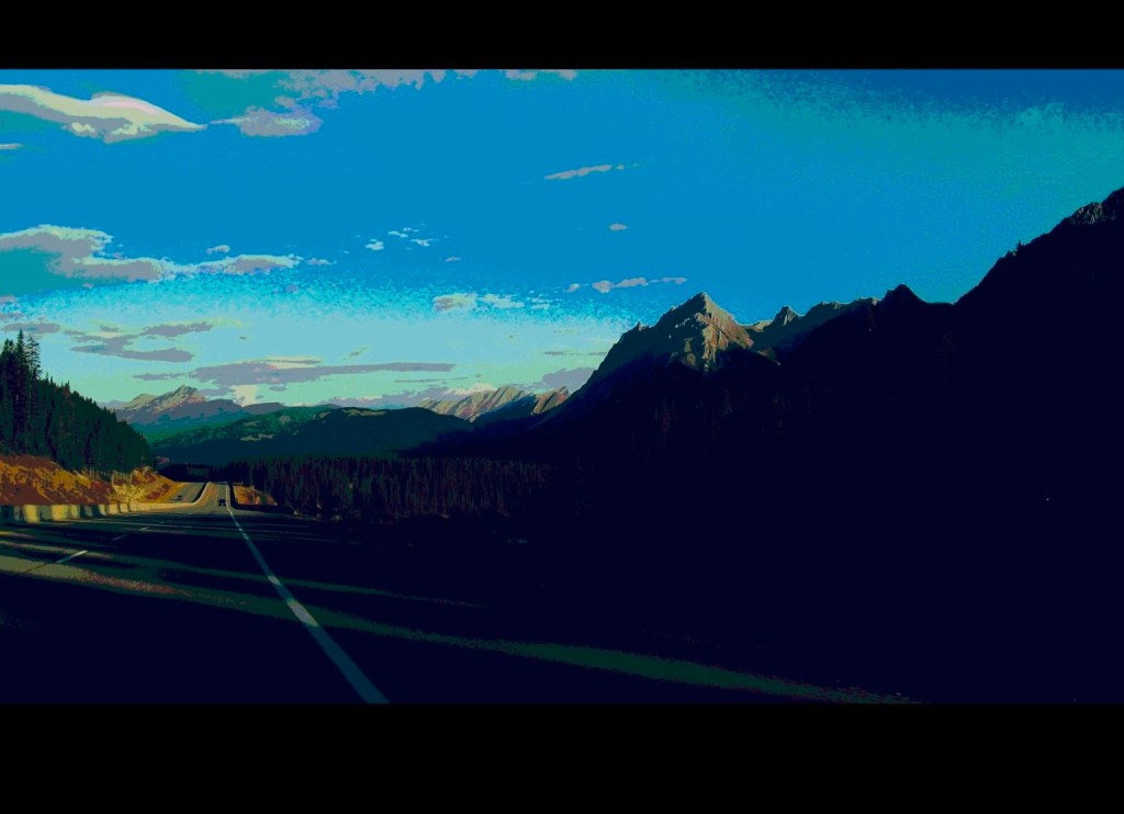 Art from photos my daughter took on our drive through the mountains in 2010 has been a slow process of changing them to create the ‘feel’ of our adventure. A sense of awe, excitement, mystery and a hint of potential danger. Anyone who has driven mountain roads would surely understand what I mean.My daughter and travel companion, Alissa Happy me. Last car on the ferry 2010.