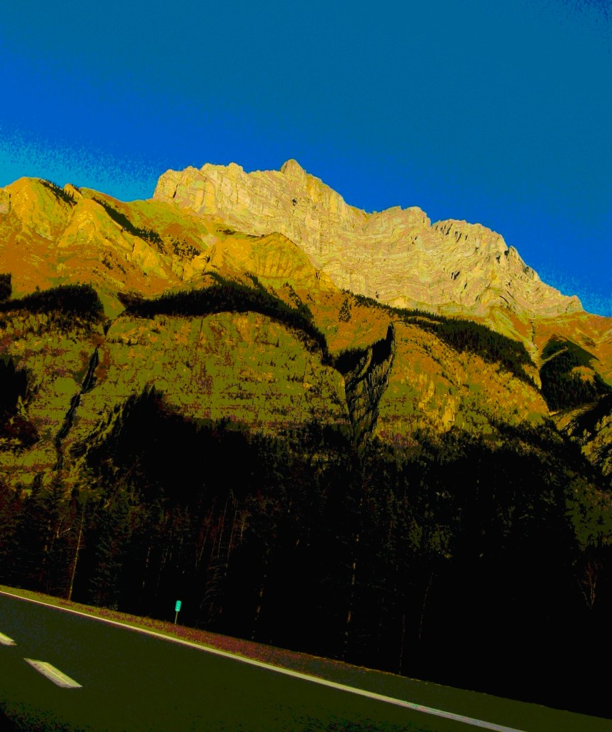 More art I created from my daughter’s photos on our drive through the mountains in 2010, was a slow process to attain the ‘feel’ of our adventure … awe, excitement, mystery and a hint of potential danger…