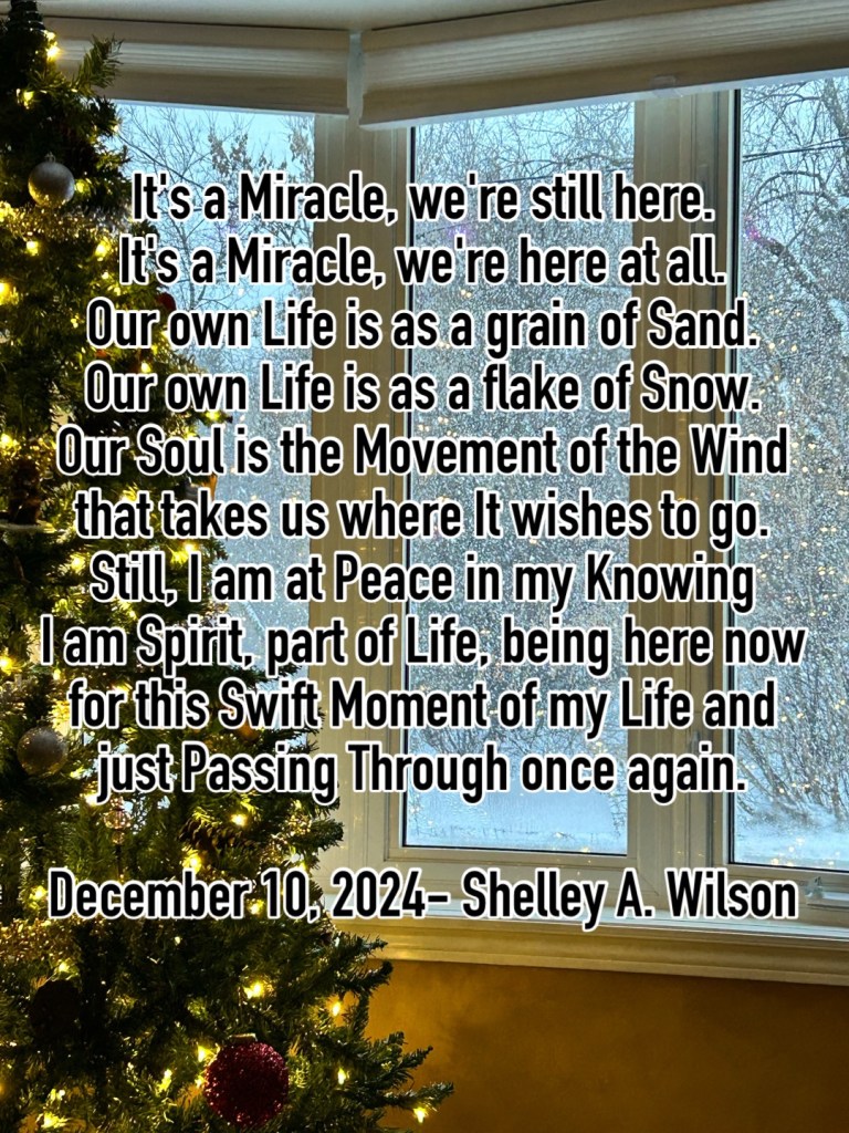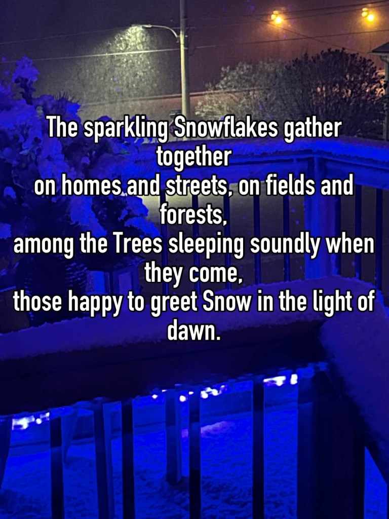Snowfall November 26, 2024 / Flowerpoet / Leave a comment Watching the Snowfall silently… Share this: Click to share on Facebook (Opens in new window) Facebook Click to share on Pinterest (Opens in new window) Pinterest Click to share on X (Opens in new window) X Click to email a link to a friend (Opens in new window) Email Click to print (Opens in new window) Print Like Loading...
