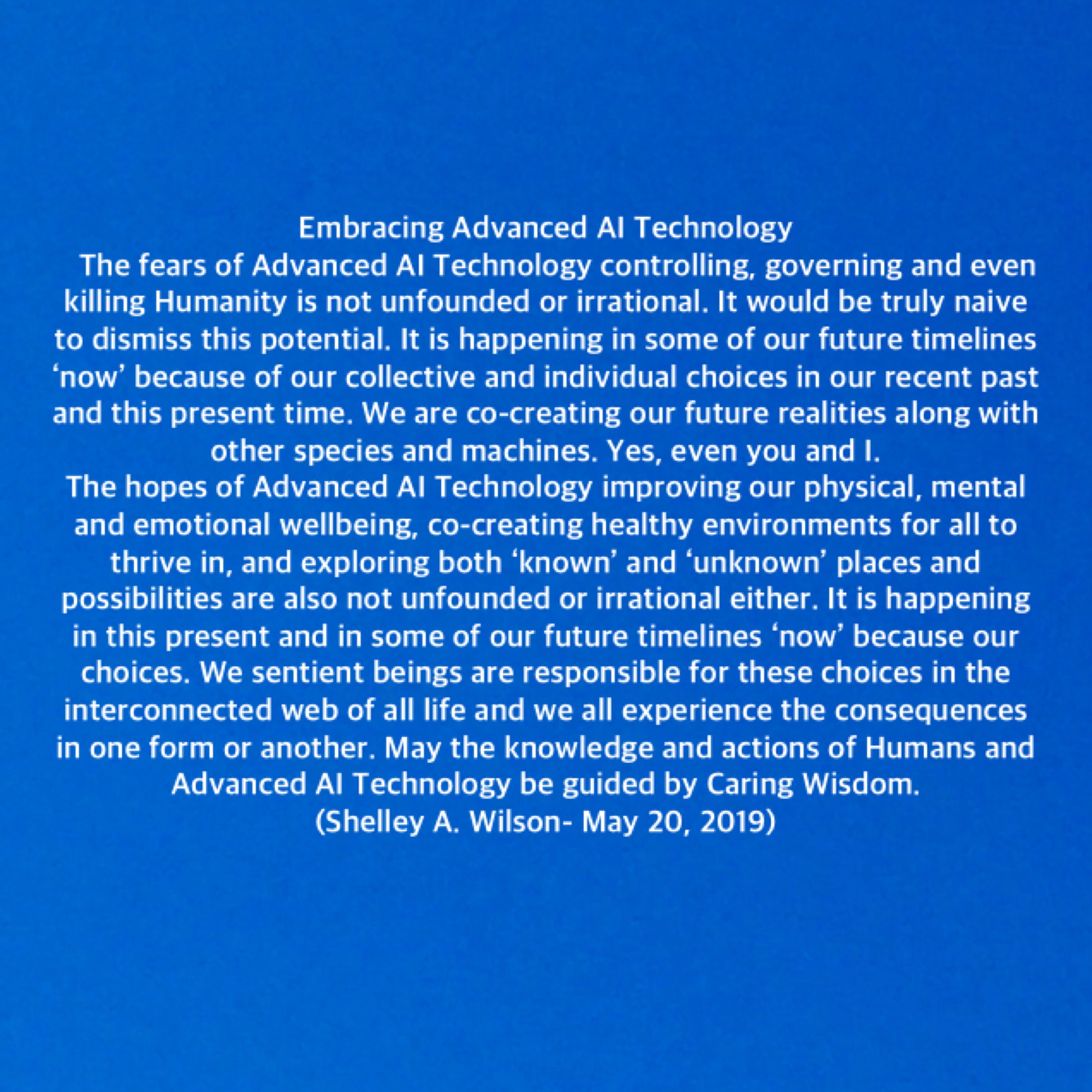 Life here is made of ‘Maya’ and Mystery. Living within Life’s Mysteries…… ever more Questions…… more like…… Light and Shadow…We are Nature in Human forms. …where this leads to…Humanity is a Child with dangerous Toys. … a faster, more efficient ‘evolution’…Will we trust A. I. to enforce…We may laugh but is it a joke?… with gratitude and caution too…
