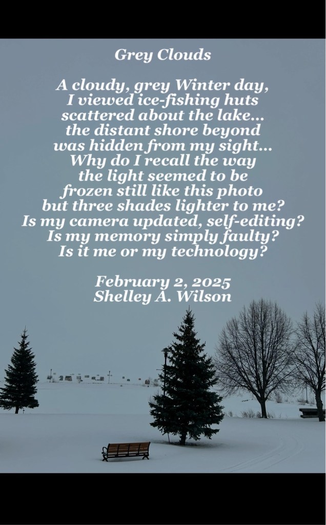 Grey Clouds February 2, 2025 / Flowerpoet / Leave a comment Is it me or my technology? Share this: Click to share on Facebook (Opens in new window) Facebook Click to share on Pinterest (Opens in new window) Pinterest Click to share on X (Opens in new window) X Click to email a link to a friend (Opens in new window) Email Click to print (Opens in new window) Print Like Loading...