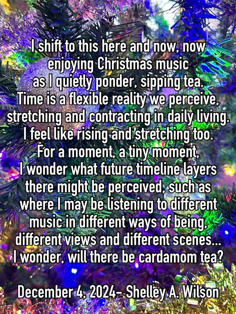 I wish you wellbeing in these dark days and dangerous times. If you celebrate the winter solstice, Happy Solstice, if you celebrate Christmas, Merry Christmas, and if you celebrate other religious Holidays, Happy Holidays. My family, some friends, and I celebrate Christmas in our hearts and enjoy the gift giving of the Santa Story as well. Whatever you celebrate, may Peace prevail.