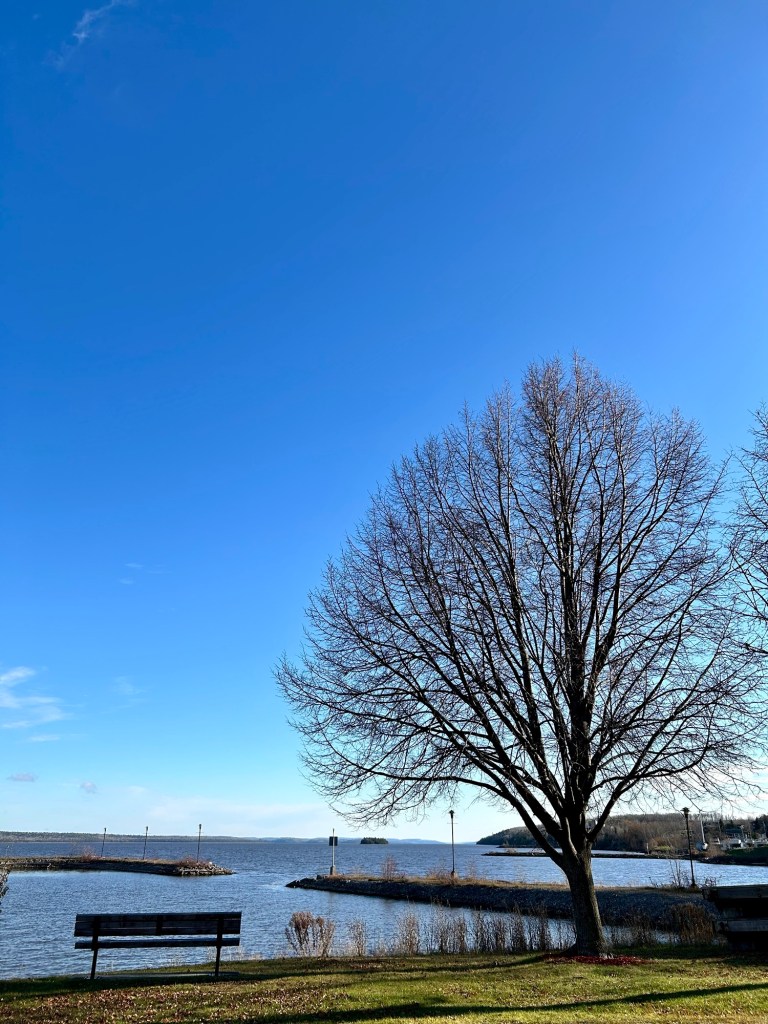 I took a peaceful stroll by Lake Temiskaming shared by both Ontario and Quebec. I imagine the fish in it are bilingual, trilingual or multilingual. 😂 As for me, it’s English and the language of Poetry with a bit of schooling in French and Latin, both of which much is forgotten like all the languages of other human lives.