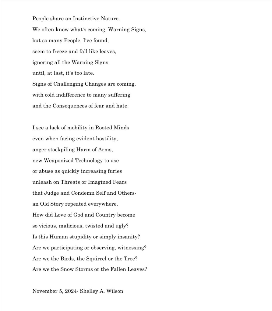 Mobility November 6, 2024 / Flowerpoet / 2 Comments Instinctive Nature… Share this: Click to share on Facebook (Opens in new window) Facebook Click to share on Pinterest (Opens in new window) Pinterest Click to share on X (Opens in new window) X Click to email a link to a friend (Opens in new window) Email Click to print (Opens in new window) Print Like Loading...