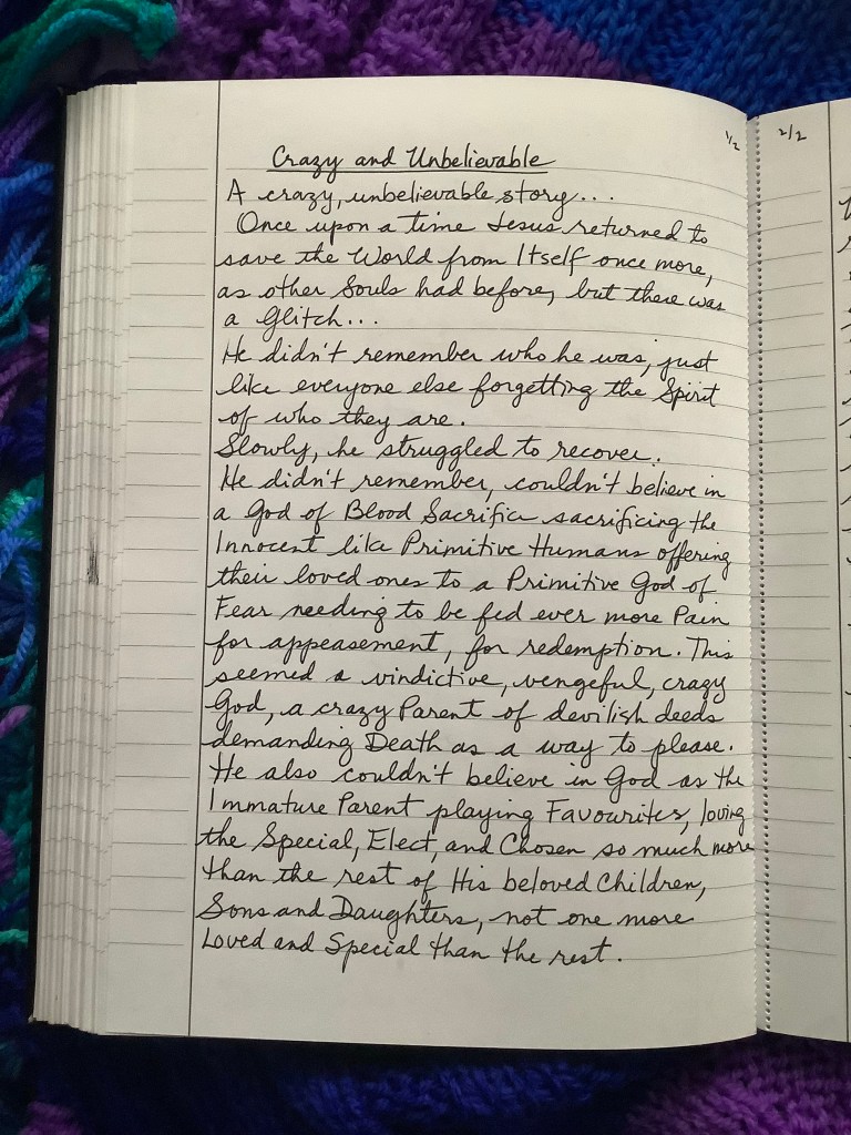 I once believed in a God of Sacrifice, a Death Dealing God who Required us to Demonstrate Obedience through our Self Sacrifice and the Sacrifice of our Loved Ones, especially the Innocents, the Child, the Children of God, Sons and Daughters of Man, the countless Sacrifices of Harmless Animals to a Primitive God still worshipped by many.